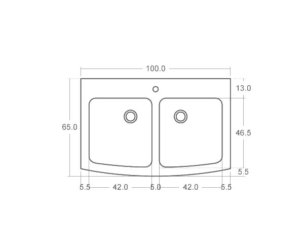 The Mougins double-bowl sink is a timeless classic with curved lines and rounded angles, offering the added practicality of two bowls for rinsing dishes.